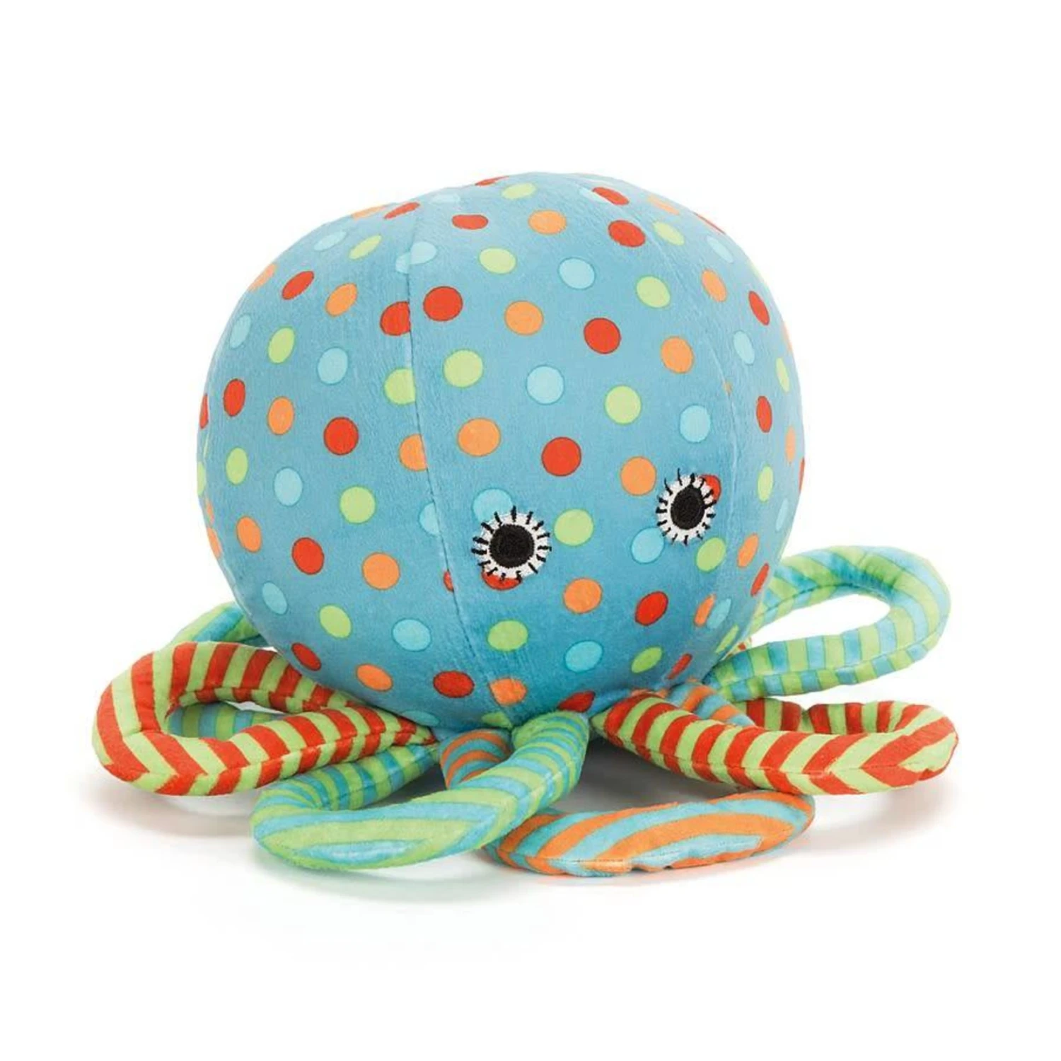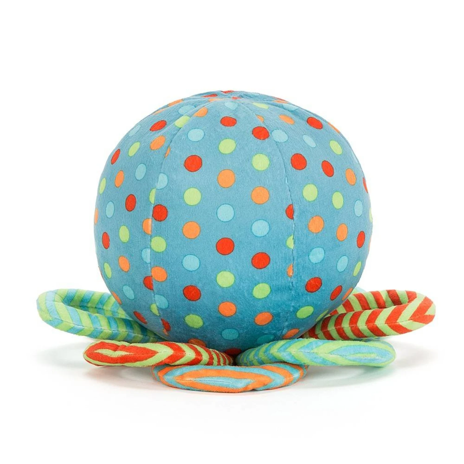 Under the Sea Octopus is so squashy-soft, with stripey, jazzy loopy legs. Her polka dot tummy is suedey-soft with a big chime inside for extra fun. With big, bonny eyes and a cascade of colours, it’s no wonder she’s such a proud octopus!